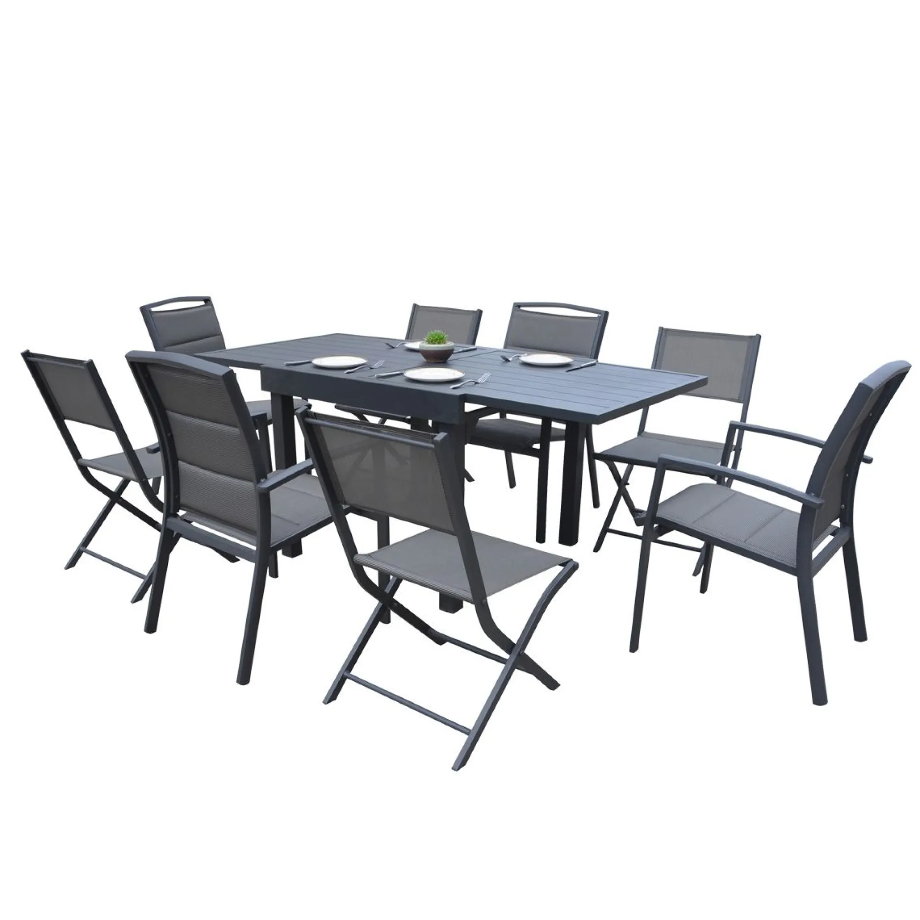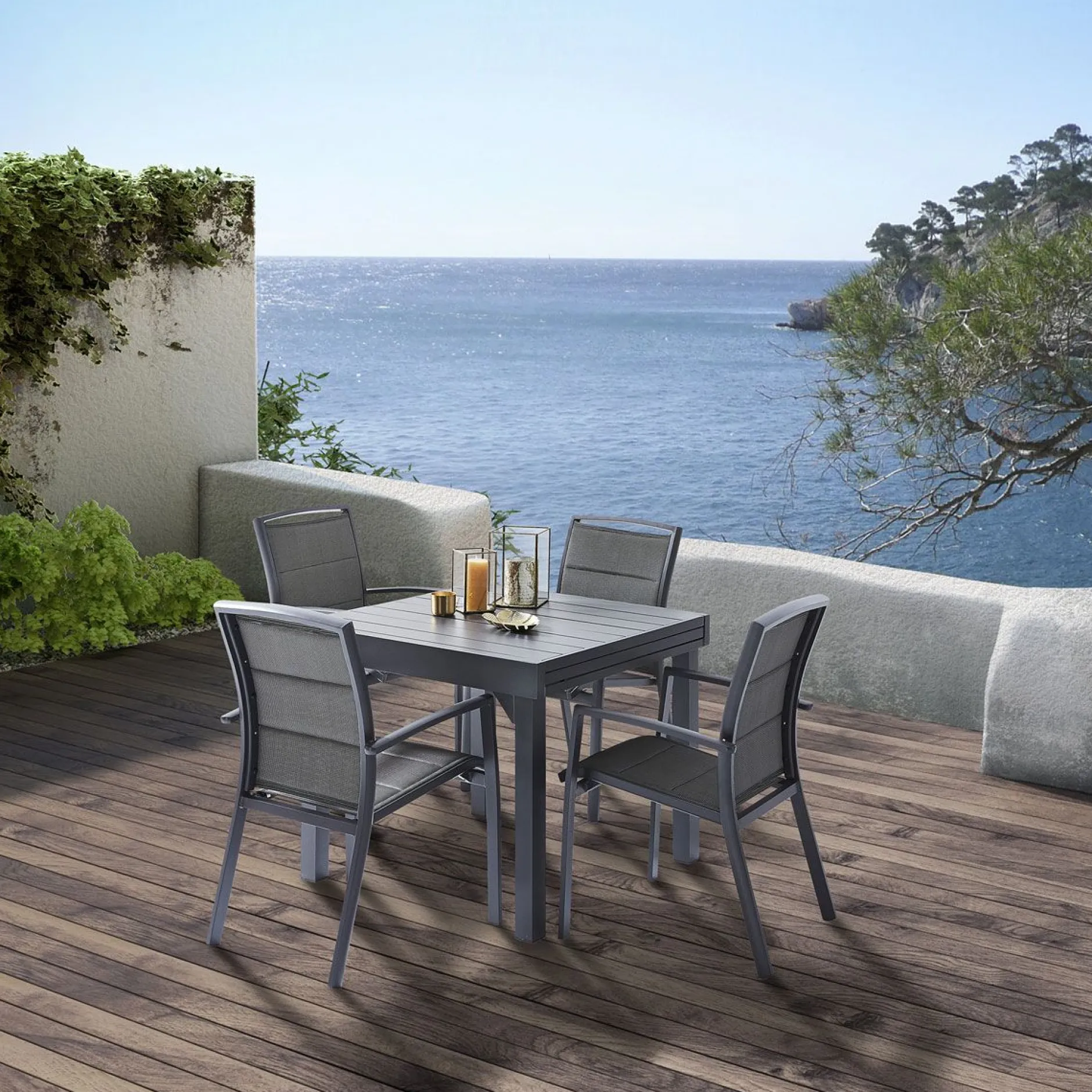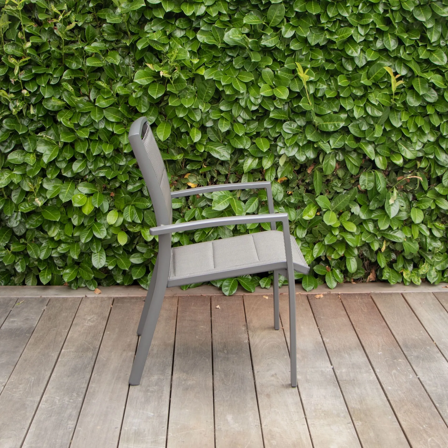 De Modulo armstoel heeft een aluminium structuur en biedt een comfortabele zit. Het textileen is versterkt en weerbestendig.