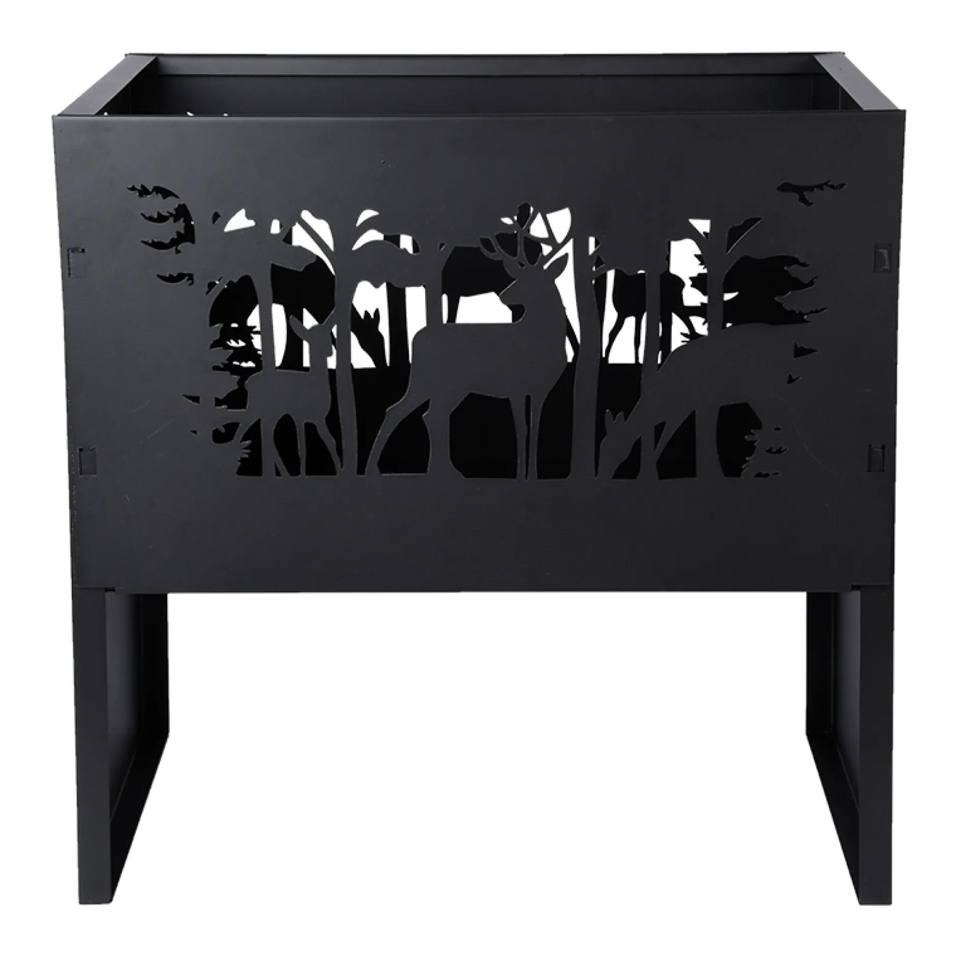 Deze rechthoekige vuurkorf voorzien van lasergesneden herten zorgt voor prachtige schaduwen en is een aanwinst voor iedere tuin of terras. De innovatieve verpakking kan gebruikt worden als aanmaakhout.