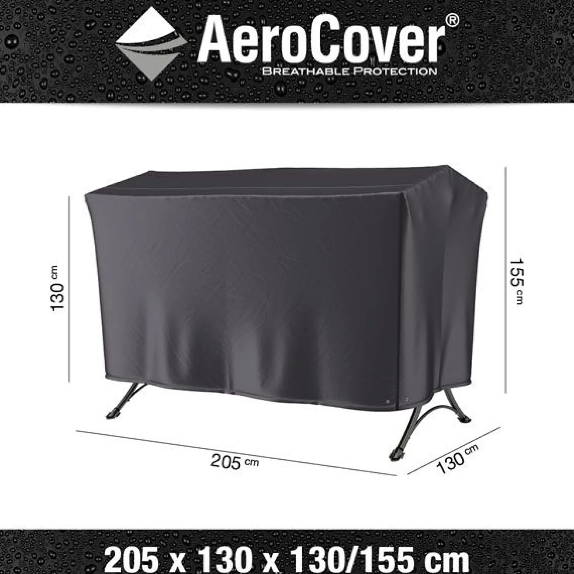 Schommelbankhoes voor schommelbanken van AeroCover. Ademende hoes voor schommelbanken met afmeting 205x130xh130/155cm.