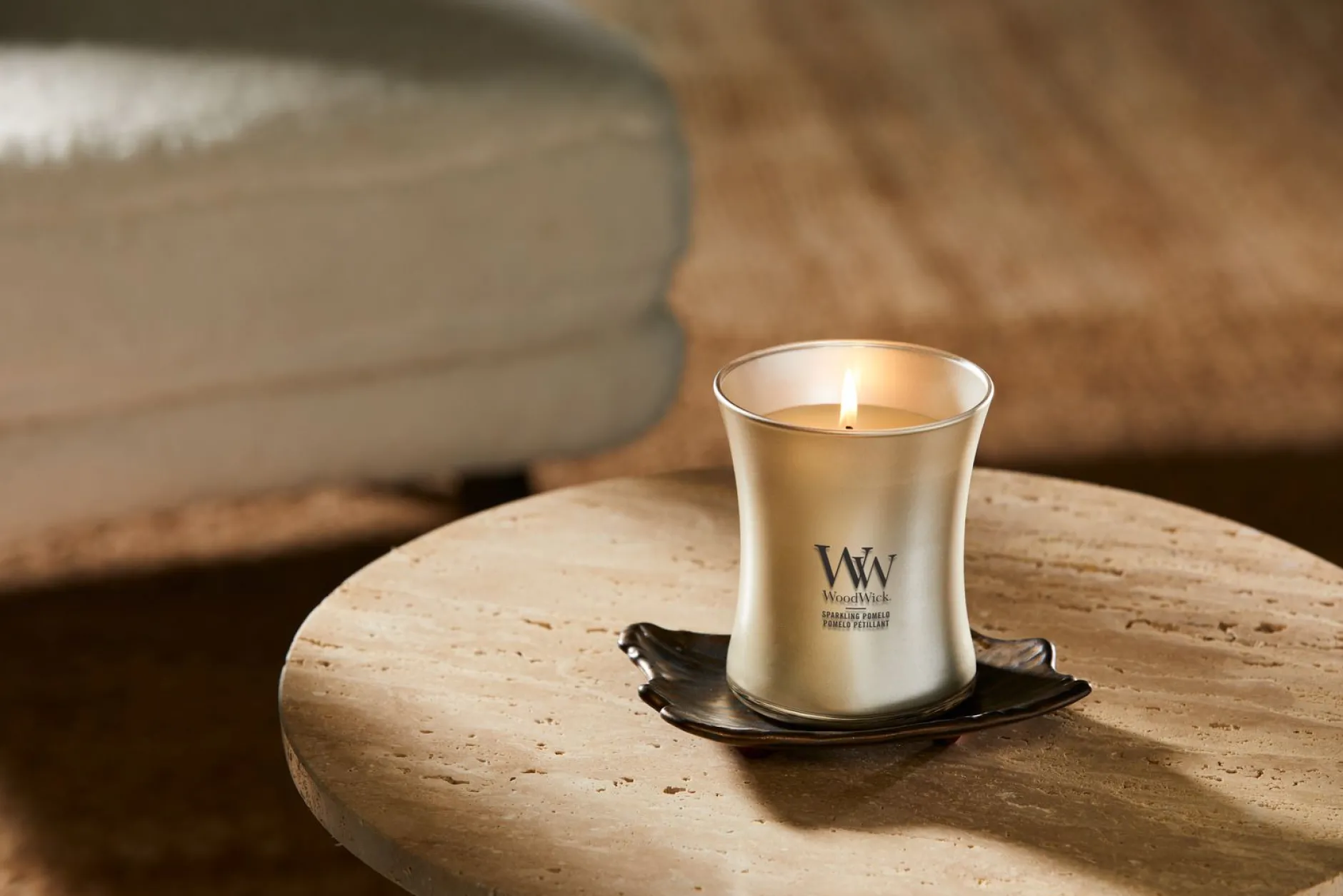 Ontdek de luxe van de Champagne Metal Collection met de WoodWick Sparkling Pomelo geurkaars. Deze limited edition combineert een verfijnde geurbeleving met een stijlvol metalen design dat perfect past in ieder interieur. De unieke Pluswick® Innovation houten lont zorgt voor een gelijkmatige verbranding, optimale geurverspreiding en een rustgevend knispergeluid. Met een brandduur van circa 60 uur geniet je langdurig van deze sprankelende en warme geur.