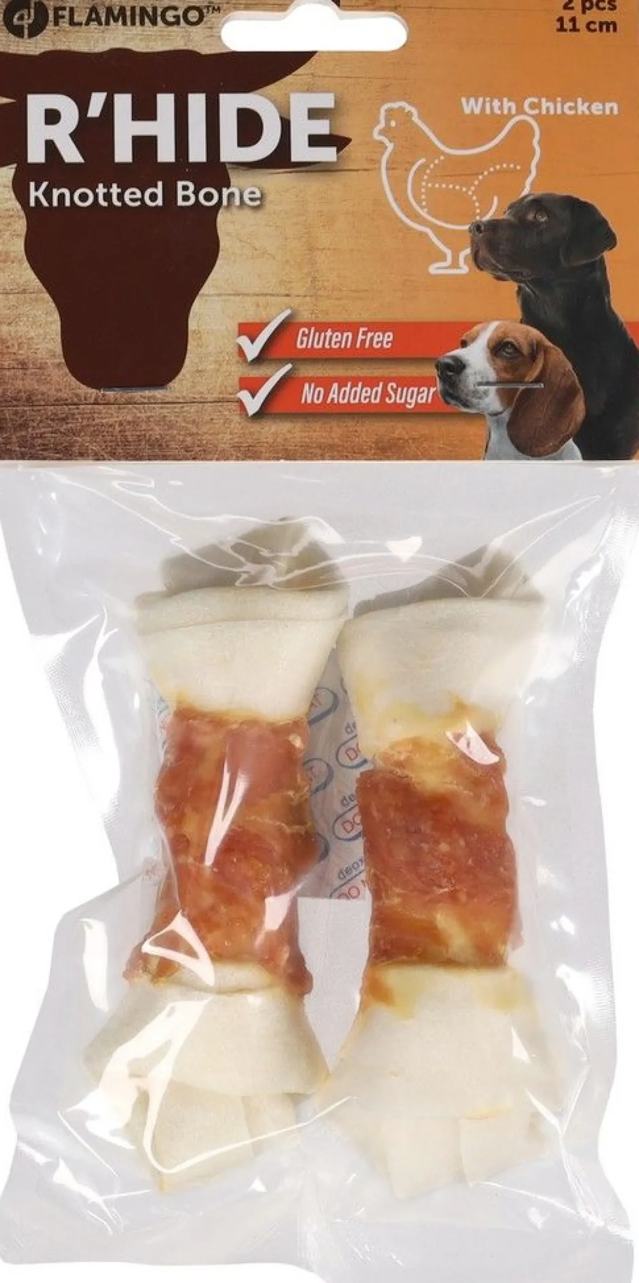 Kippenborst (22%), Runderhuid (72%), zetmeel (1,5%), sorbitol (2%), glycerine (2%), zout (0,5%)