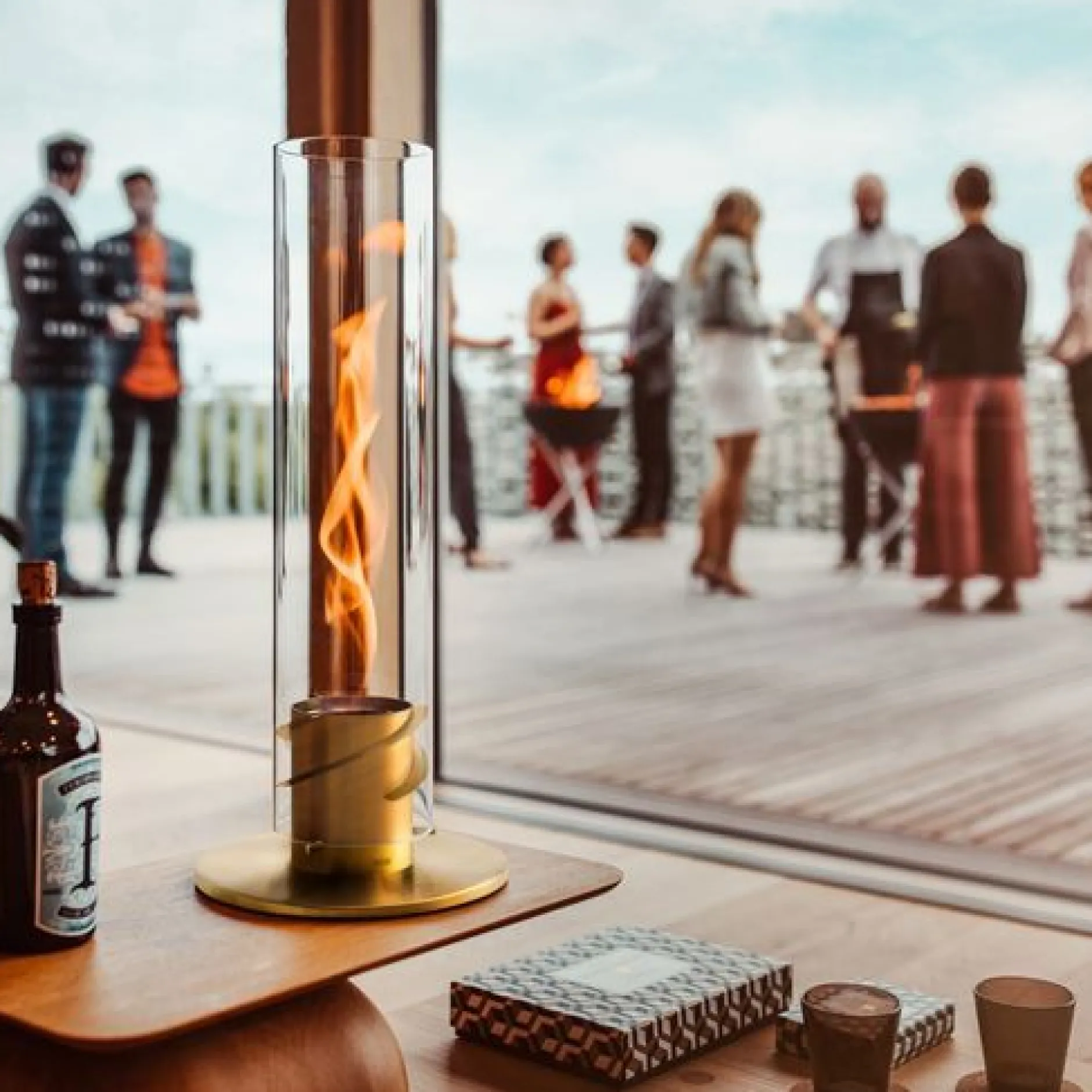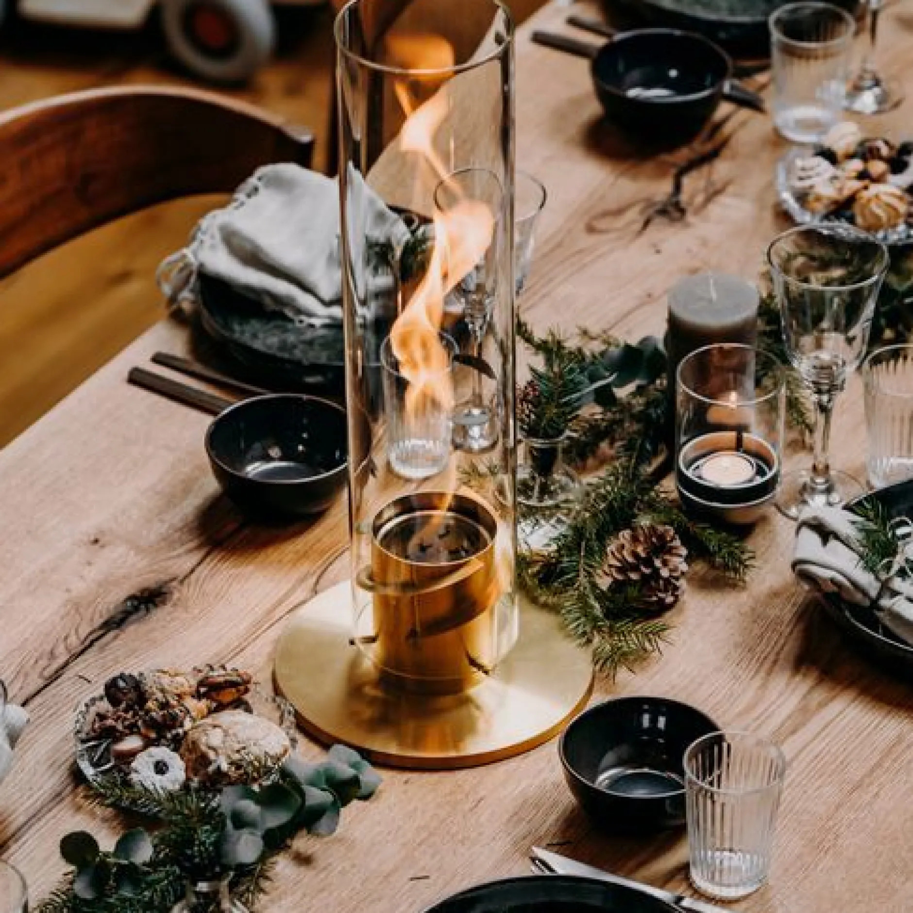 De indrukwekkende dans van de vlammen ontstaat door bio-ethanol verbrand in een blikje. Plaats het blikje eenvoudig in de roestvrijstalen voet op een effen oppervlak en steek de verbrandingsgel aan met een verlengde universele aansteker of een lange lucifer. Zet snel de glazen cilinder (gemaakt van hoogwaardig borosilicaatglas) en geniet van de lichtgevende draaikolk van vlammen gedurende 60 minuten (Spin 90) tot 80 minuten (Spin 120). Wie het spektakel voortijdig wil beëindigen, hoeft alleen maar het ingesloten blusdeksel op de glazen cilinder te plaatsen, waardoor de vlam binnen enkele seconden wordt gedoofd.